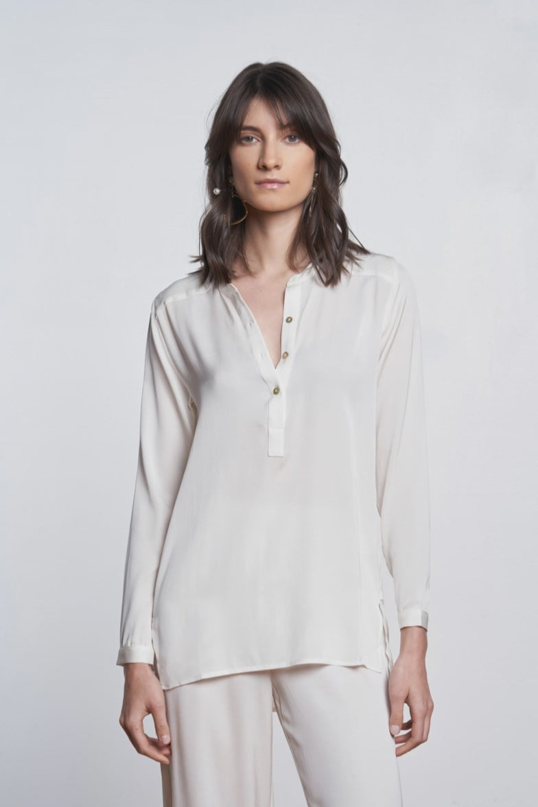 Die Montenegro Tunika in Silk95Five ist ein zeitloses Must-have für jeden Anlass und sorgt für mühelose Vielseitigkeit. Gefertigt aus unserer charakteristischen Stretch-Seide, vereint diese Tunika Eleganz mit Leichtigkeit und besticht durch einen fließenden Fall und raffinierte Schlichtheit. Der klare, kragenlose Ausschnitt verleiht moderne Raffinesse, während die längere Länge und die Seitenschlitze bei jedem Schritt für anmutige Bewegung sorgen. Ob locker getragen, mit Gürtel in der Taille oder unter maßgeschneiderten Kleidungsstücken – die Montenegro Tunika ist ein zeitloses Kleidungsstück, das sich nahtlos vom Tag in den Abend überträgt.