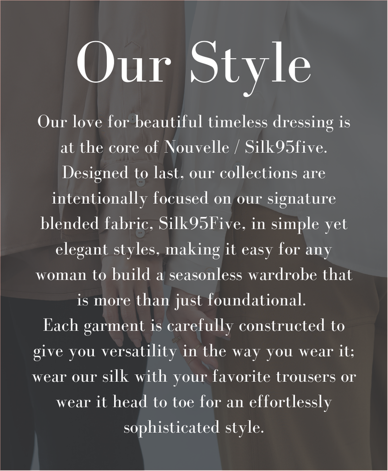 Since the launch of Silk95Five, Nouvelle has expanded to over 300 of the finest boutiques stateside. In 2020, we launched in France showing at Who's Next and are now selling to top French and Italian stores. The European launch has also brought attention to the sustainable element of Silk95Five as featured in Luxiders Magazine about the fact that we implement a holistic plan for sustainability through the guidelines of the circular fashion systems approach.